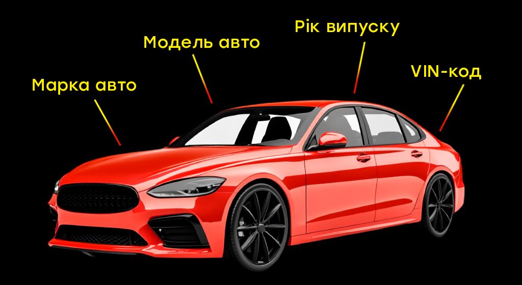 Також нам обов’язково потрібна інформація про авто: марка, модель, рік випуску, VIN-код.